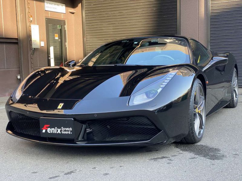 - 「 新車フェラーリ488 GTB Fenix scratchguardブラックカラーペイントプロテクションフィルム施工事例」