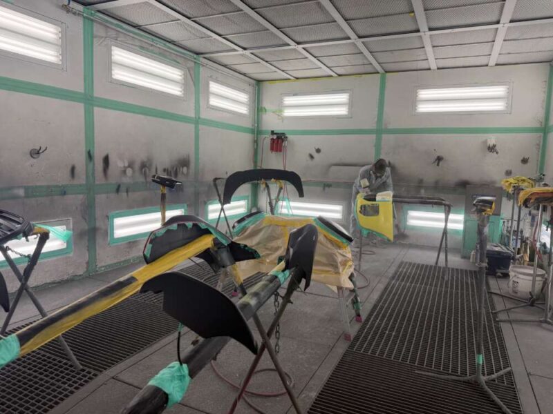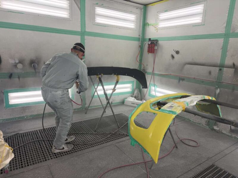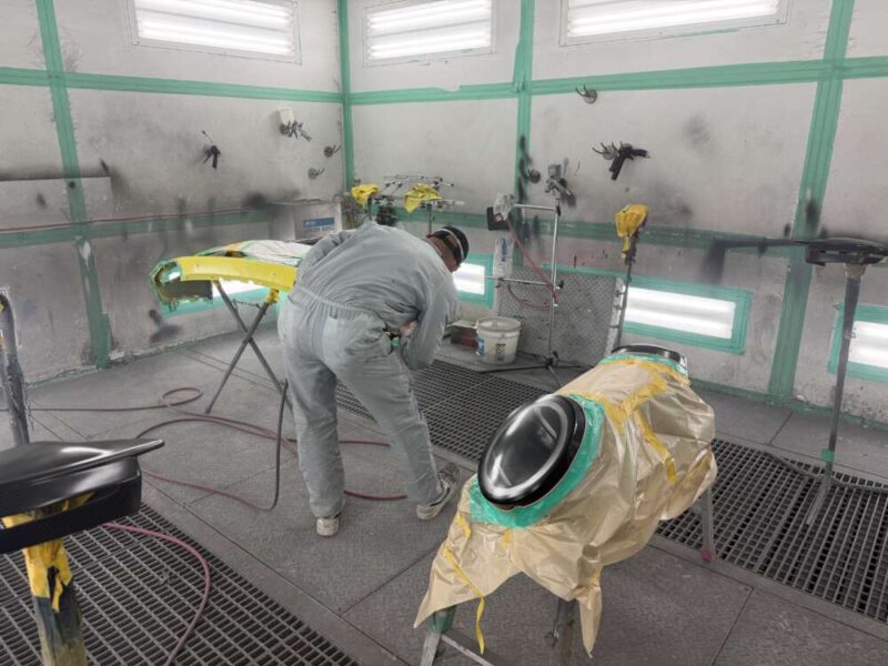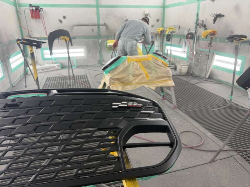 マスキングを行い、Fenix scratch guard クリアペイントプロテクションの施工を・フロントバンパー・左右ヘッドライトをパーツごとにFenix塗装を施工致します。
