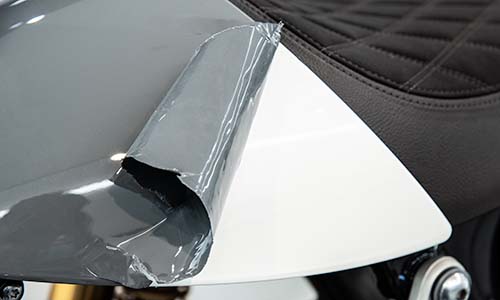 塗装部分や メッキパーツはもちろん、バイクならではの細かいパーツにも施工可能で、150〜200μm以上のフィルムで強力に愛車をガード。オリジナルの塗装を保護し、剥がす事ができるので剥がせばオリジナルの状態に戻せます。